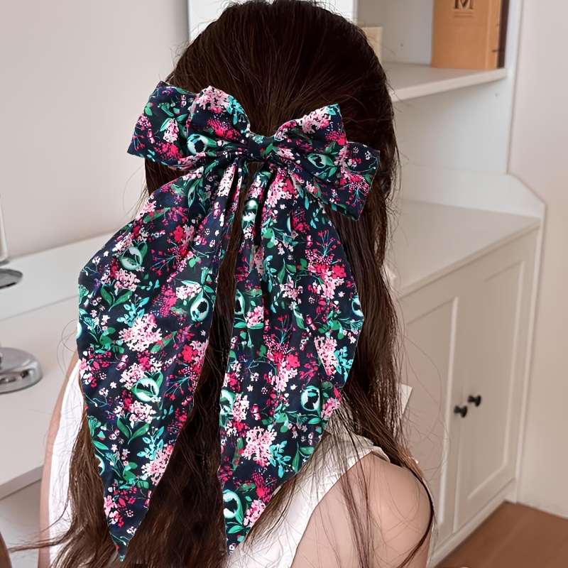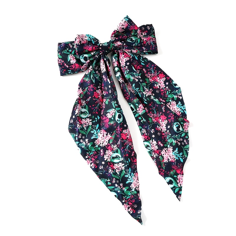 风格独特:花卉图案的柔美与骷髅元素的暗黑碰撞,形成小众且有辨识度的风格,适合追求个性、喜欢暗黑浪漫风的人群。 材质与质感:丝巾材质柔软顺滑,垂坠感佳,佩戴时能呈现自然的褶皱与飘逸感,提升造型的精致度。 用途多样:可作为发带打造复古蝴蝶结发型,也可系于颈部作为丝巾点缀穿搭,或绑在包上作为装饰,适配多种搭配场景。 设计细节:大蝴蝶结造型夸张吸睛,尖角丝巾的长度增加了造型的层次感,图案的色彩对比强烈,视觉冲击力强,能快速成为穿搭的亮点。